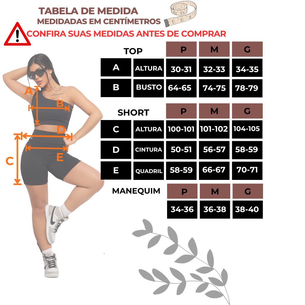 Conjunto Babi é confeccionado em tecido canelado encorpado, macio e com excelente elasticidade. O top de um ombro só traz um design moderno e estiloso, oferecendo conforto e sustentação. O short de cintura alta valoriza a silhueta e garante segurança nos movimentos.